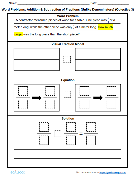 Word Problems Addition Subtraction Of Fractions Math Anchor Page Iep Goal And Objectives Goalbook Toolkit